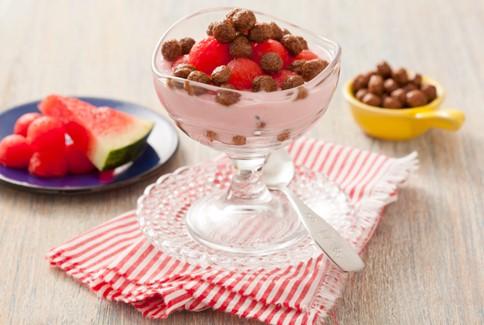 Para o desjejum, combine com cereais, frutas, leite vegetal ou em pequenos pedaços no iogurte.Tacinha divertida de melancia e Nescau Cereal