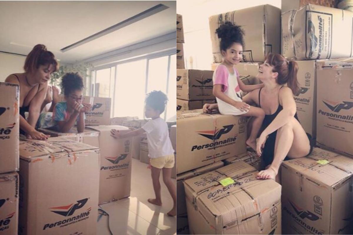 “Pela primeira vez estou me mudando do Rio. As vezes vem um frio na barriga enorme, são 41 anos de Cidade Maravilhosa, mas eu to com uma intuição bem boa que São Paulo vai me acolher com muito amor e trabalho”, declarou a atriz, que teve ajuda das filhas Lara e Alicia para empacotar tudo.