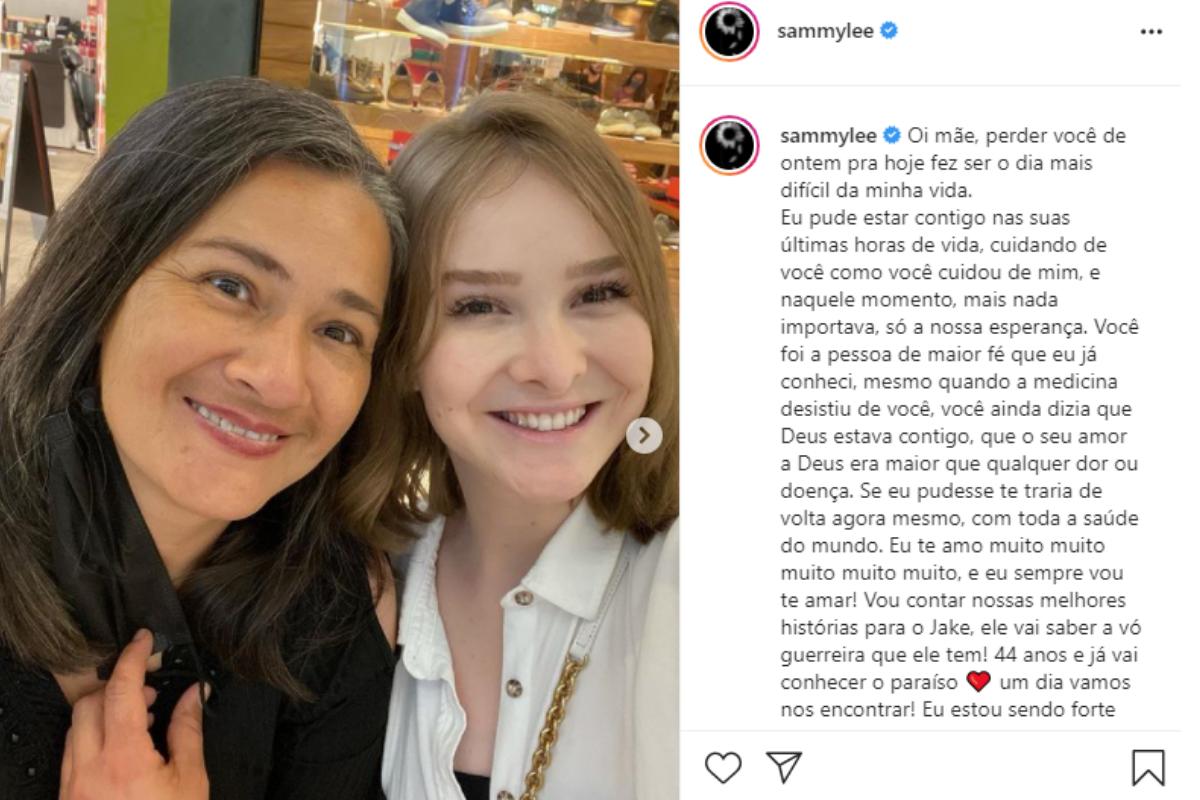 Sammy Lee usou as redes sociais nesta segunda-feira, 12 de julho, para contar uma notícia muito triste aos seguidores: a morte da mãe dela, que foi vítima de um câncer. Com uma série de fotos, a influenciadora, que é casada com Pyong Lee, fez sua despedida. Em 2018, ela chegou a raspar os cabelos em solidariedade à luta da mãe contra o câncer.