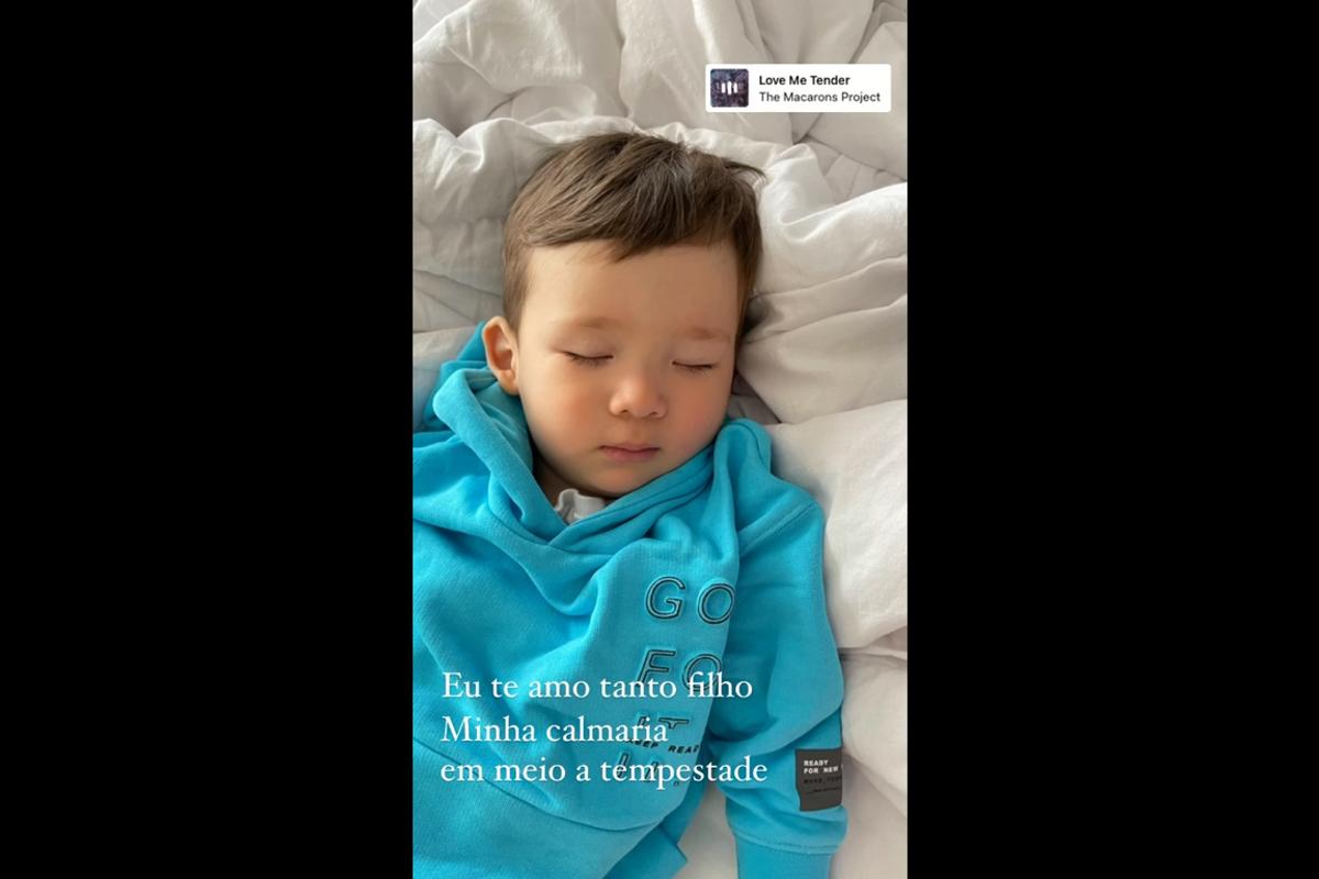 “Eu te amo tanto, filho. Minha calmaria em meio a tempestade”, se declarou Sammy no Instagram Stories. No registro, Jake aparece deitado em um cama com os olhos fechados e usa uma roupa azul. Ela também postou alguns vídeos de Jake brincando em meio à natureza.