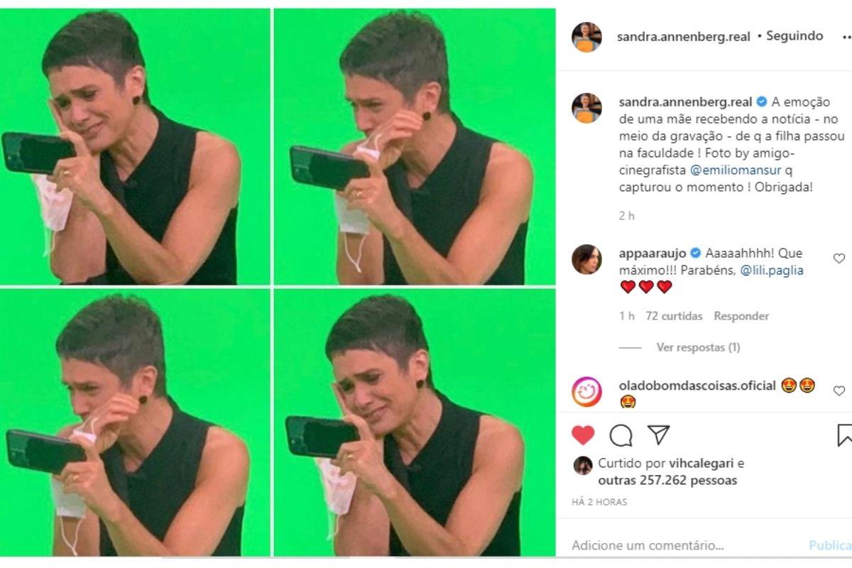 Essa não é a primeira vez que Sandra mostra o orguho que tem da filha nas redes! Recentemente Sandra contou aos seguidores que Elisa entrou na faculdade. Na ocasião a jornalista compartilhou uma sequência de fotos em que aparece chorando ao receber a notícia. E o melhor: tudo aconteceu enquanto ela gravava, na TV Globo!