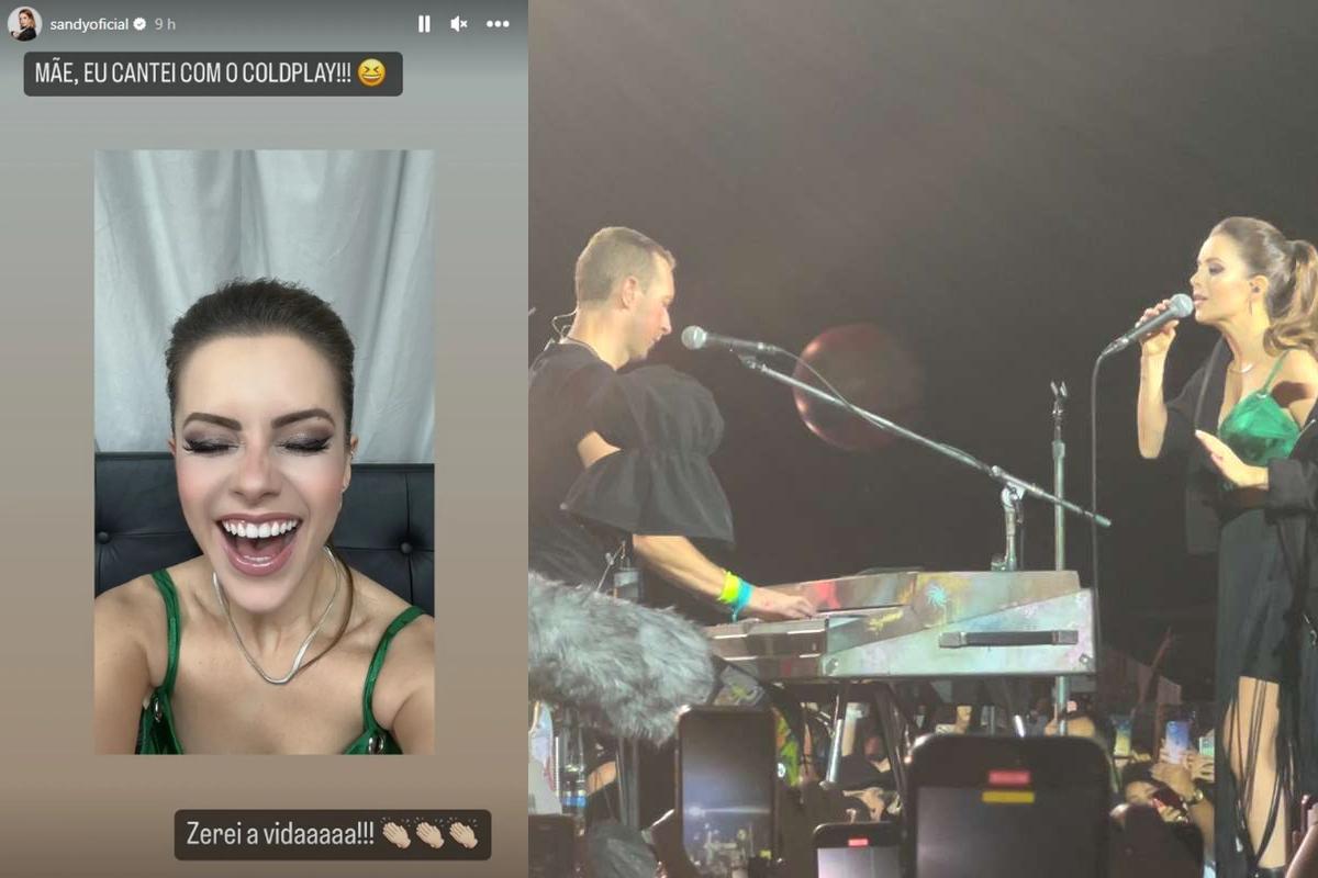 A cantora Sandy, de 40 anos, se encontra em estado de choque após ter dividido o palco com o Coldplay em um show da banda inglesa que aconteceu na última terça-feira, 14 de março, em São Paulo. Com eles, a artista apresentou duas músicas e aproveitou para comemorar a participação com a família – mais especificamente, sua mãe, Noely Lima, de 62.