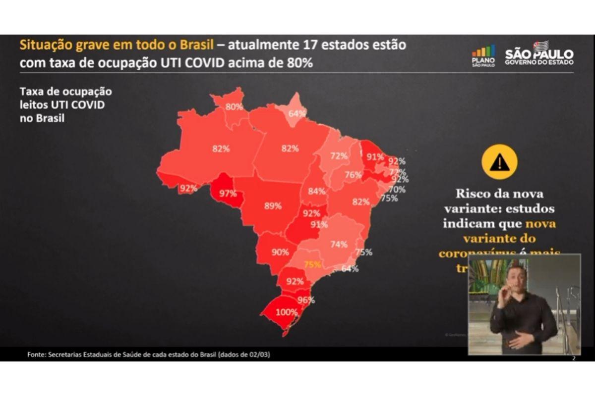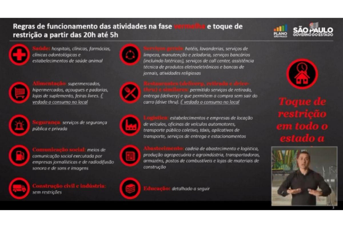 Nesta quarta-feira, 3 de março, em uma coletiva de imprensa realizada no início da tarde pelo governo do estado de São Paulo, o governador João Doria anunciou que o estado entrou na fase vermelha do Plano São Paulo, o mais restritivo e que permite apenas o funcionamento de serviços essenciais.