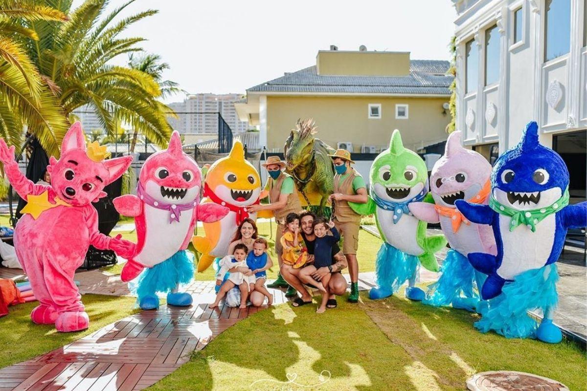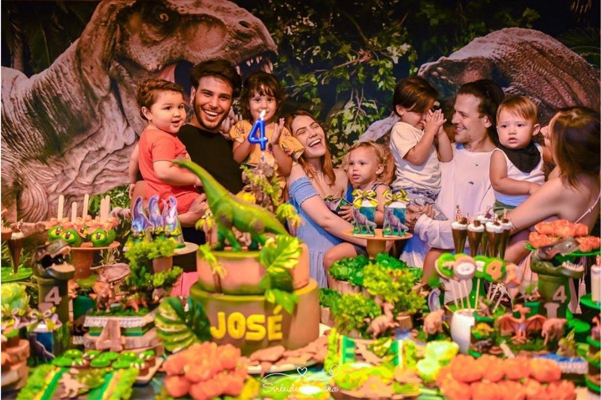 A comemoração, que aconteceu no último final de semana mas foi compartilhada apenas nesta quinta-feira, 5 de novembro, pela mãe, teve dois temas diferentes: a mesa de João foi inteira decorada com o famoso Baby Shark, já a de José foi decorada com o tema ‘dinossauros’.