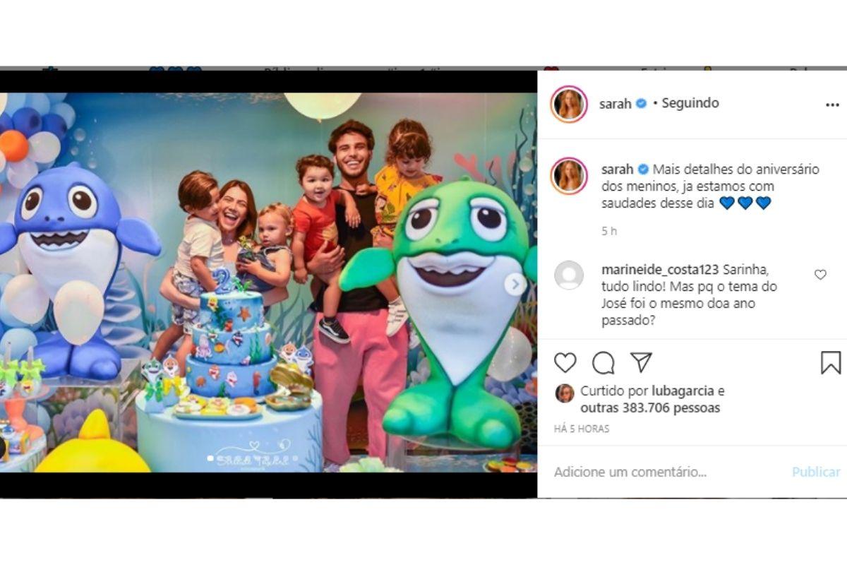 “Mais detalhes do aniversário dos meninos, já estamos com saudades desse dia”, escreveu a famosa ao mostrar detalhes da festa. Depois, ela ainda comentou: “Postei para vocês as fotinhos da festa dos meninos, que já tá me batendo uma saudade, se eu pudesse eu postava todas para vocês. Eu vou ver se posto nos stories para não ficar lotando o feed, mas foi muito bom, eles se divertiram tanto. E tem cada foto linda!”.