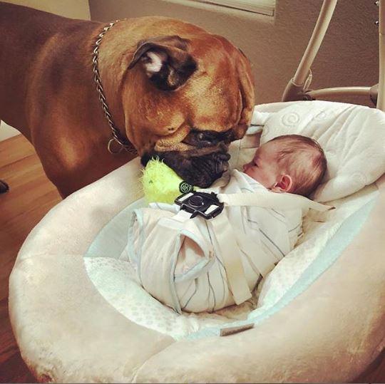 Alguns meses após adotar o Brutus, o casal americano, John e Michalek, decidiu ter um filho. O medo de como seria a relação entre o cão e o bebê passou a ser alegria. Brutus criou um vínculo tão forte com o irmão que nem se importa em dividir seus brinquedos.