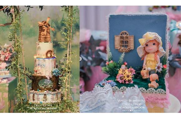 Por toda festa havia bonecas, flores, casas de madeiras e peças que remetiam a florestas encantadas: “A festa foi num contexto bem romântico e delicado (#bem-me quer boneca de papel de carta)” continuou Theonília. Ela também não pode deixar de agradecer pela presença da família e dos amigos.