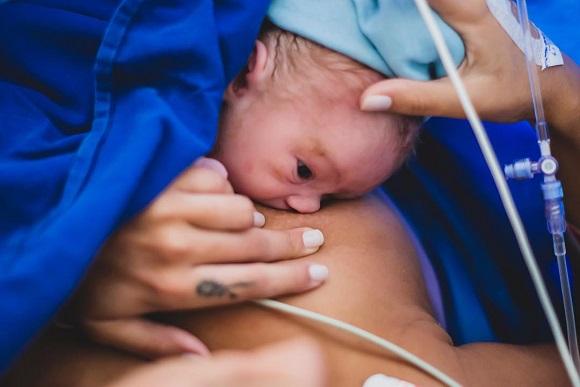 Shantal mostra o rosto do filho pela primeira vez depois do parto