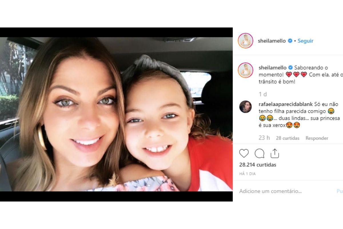 “Saboreando o momento! Com ela, até o trânsito é bom!”, escreveu. E nos comentários… chuva de brincadeiras com a situação. “Só eu não tenho filha parecida comigo… duas lindas… sua princesa é sua xerox”, disse uma. “Xerox… Mini Sheilinha, lindaas.. Deus abençoe vocês”, comentou outra. “Impressionante . Como vocês são parecidas”, se surpreendeu mais uma.
