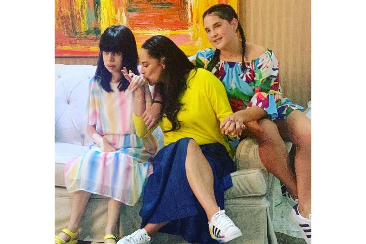 Na imagem, a mãe aparece beijando a mão da filha Luana, enquanto Amanda está segurando a outra mão de Silvia. “Sou grata à minha família por cuidar de mim e ser minha base. Sou grata às minhas filhas que me ensinam tantas coisas simples e de muito valor… Viva momentos de felicidade em família. Minhas Rainhas”, declarou.