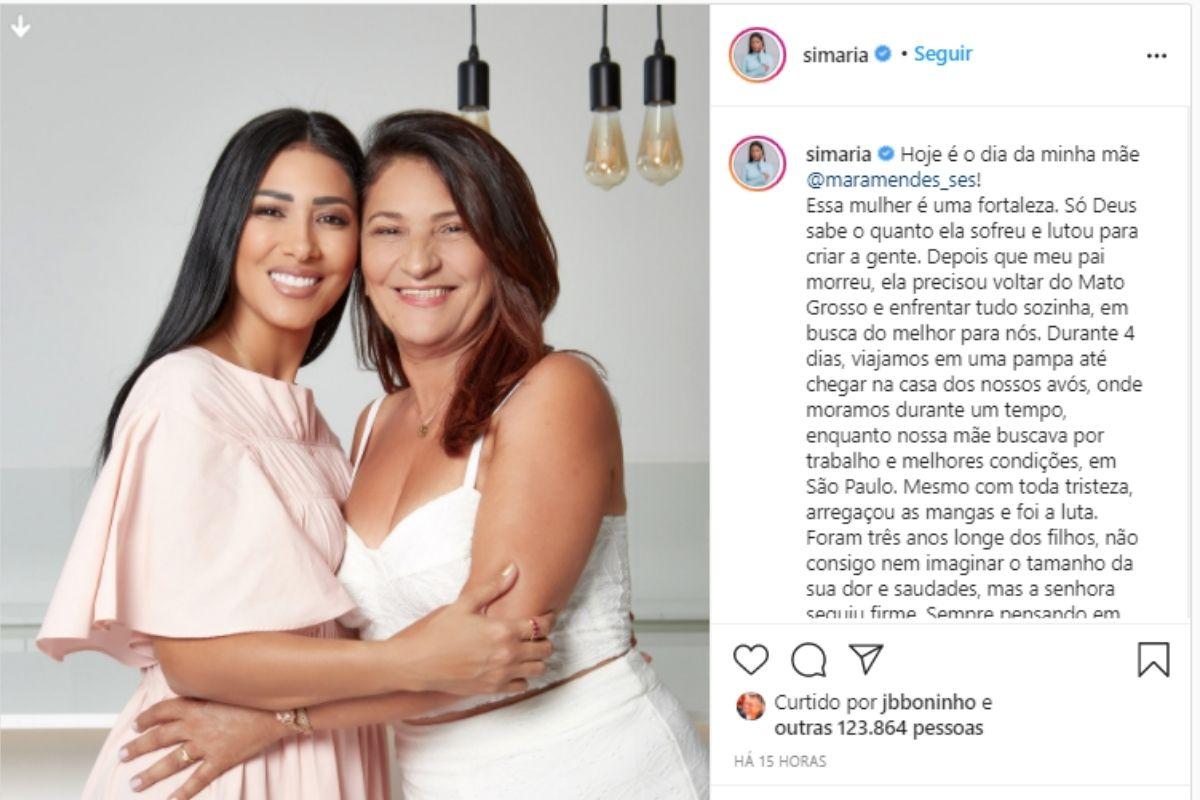 Simaria, dupla com Simone, usou o Instagram para compartilhar uma homenagem cheia de amor para a mãe, Mara Mendes, que completou mais um ano de vida na quarta-feira, 10 de março. A cantora ainda publicou uma foto carinhosa direto do álbum de família.