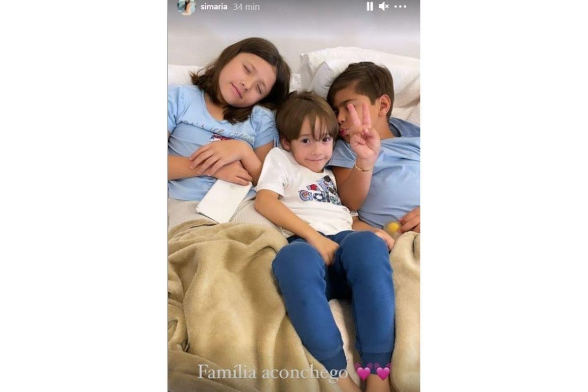 Na foto, Giovanna e Pawel ainda aparecem com o primo Henry, de 7 anos, filho da irmã e dupla sertaneja Simone. Nos stories do Instagram, Simaria ainda escreveu, “Família aconchego”.
