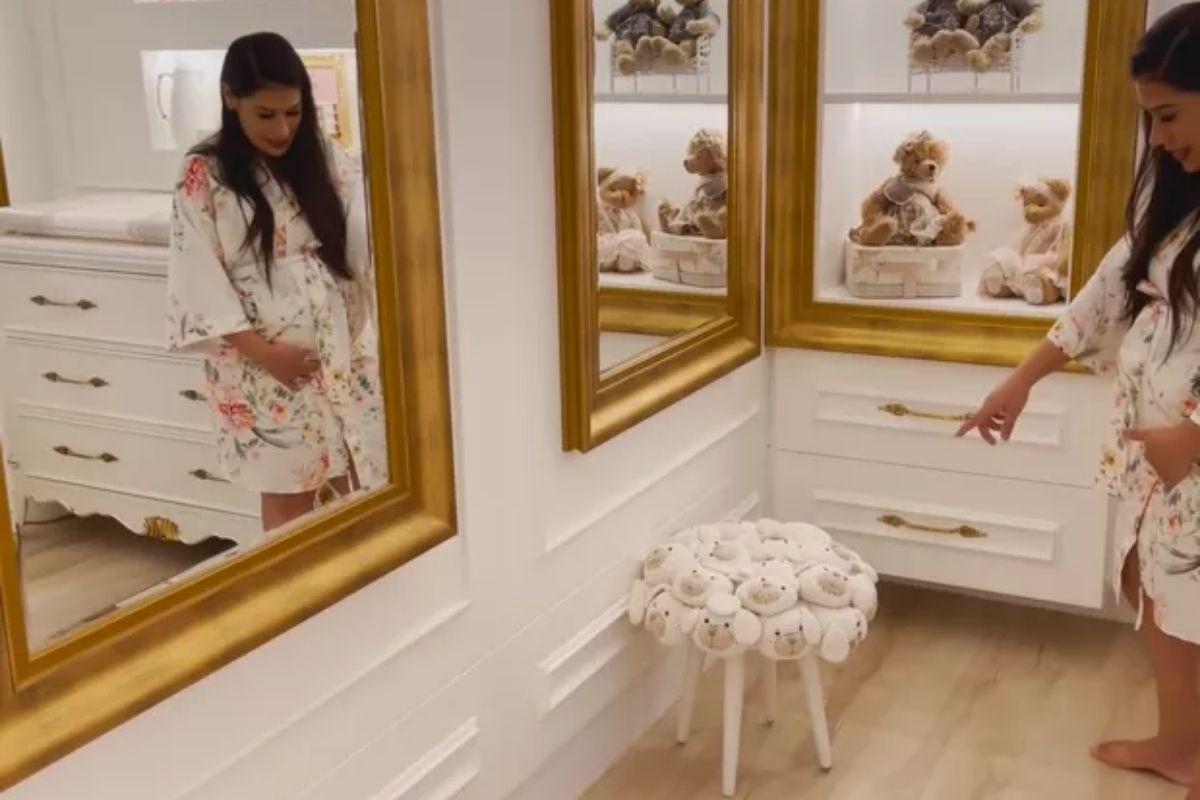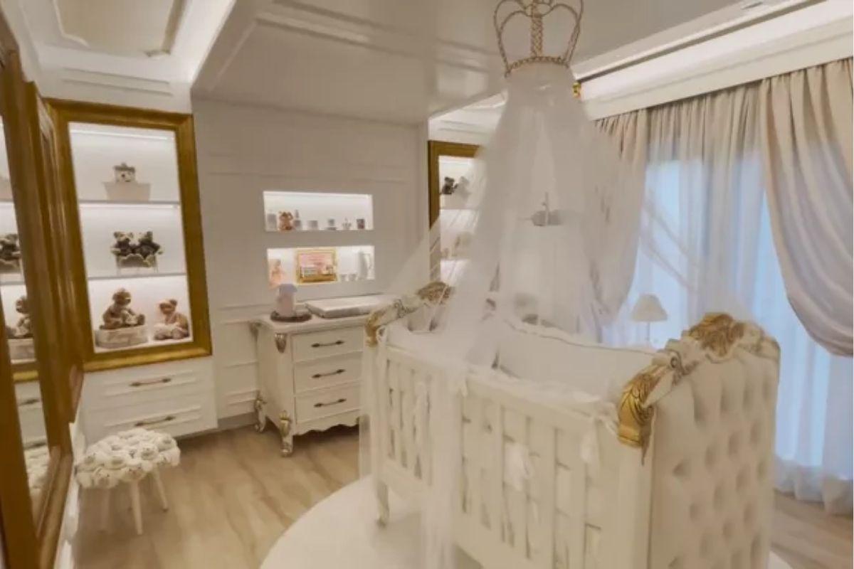 Nos vídeos, a cantora aparece dizendo: “Chegamos de viagem e vamos conhecer juntos o cantinho da nossa princesa”, comentou. A decoração do quarto é feita em tons de branco e dourado e cheia de ursinhos de pelúcia de diferentes cores e tamanhos.