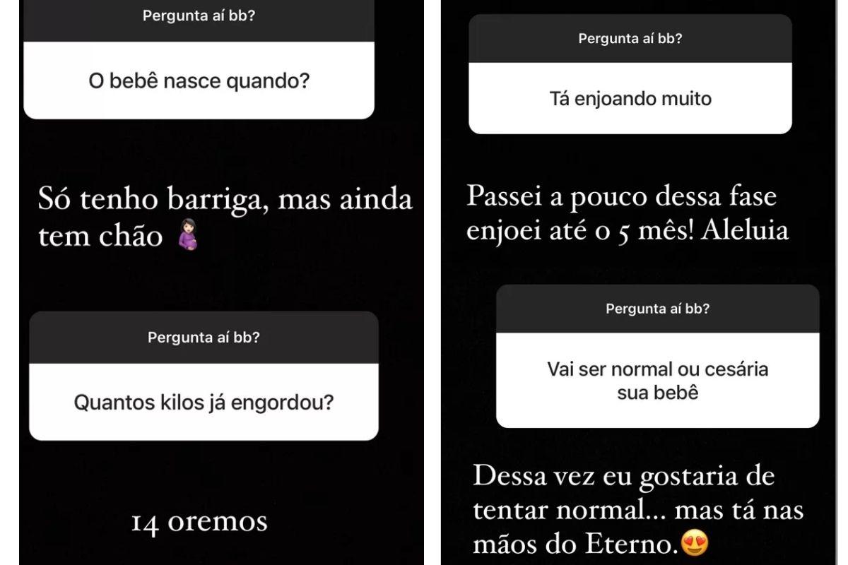 Ao responder as perguntas dos fãs, Simone disse que já ganhou 14 quilos na segunda gravidez. “Engordei 14, oremos”, respondeu. A cantora também foi questionada sobre quando a bebê, que se chamará Zaya, virá ao mundo. “Só tenho barriga, mas ainda tem chão”, brincou ela