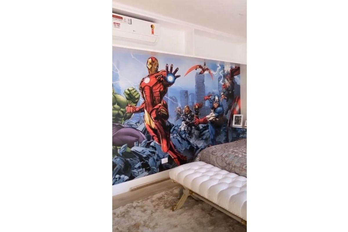 A família já se mudou para a casa nova, mas as reformas continuam. As imagens do quarto do menino mostram uma cama enorme, com cabeceira estofada e cheia de arabesques, que a cantora brincou ser de “príncipe”. Claro que não para por aí: as paredes são estampadas com os super-heróis preferidos de Henry e com fotos dele de quando era bebê.