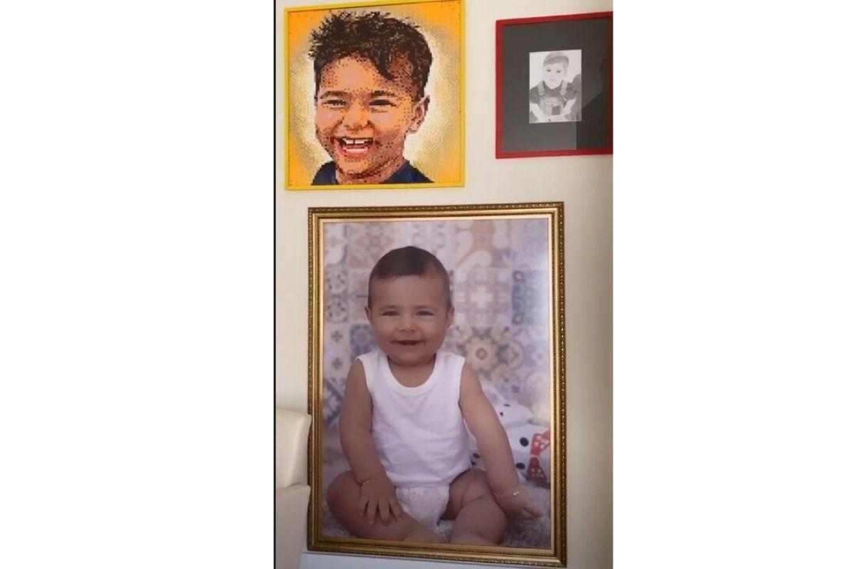 “Gente eu guardo essa foto tem uma vida, esse aqui foi do aniversário do Henry de um aninho. Ali eu ganhei de um fã, ali eu ganhei do Rodrigo e eu fiz esse espaçozinho com os quadros dele. Ô mamãe!”, a cantora foi explicando (e se derretendo!) durante o vídeo.