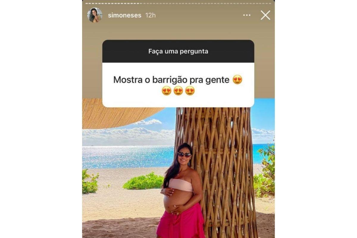 Simone mostra tamanho da barriga (Foto: Reprodução Instagram @simoneses)