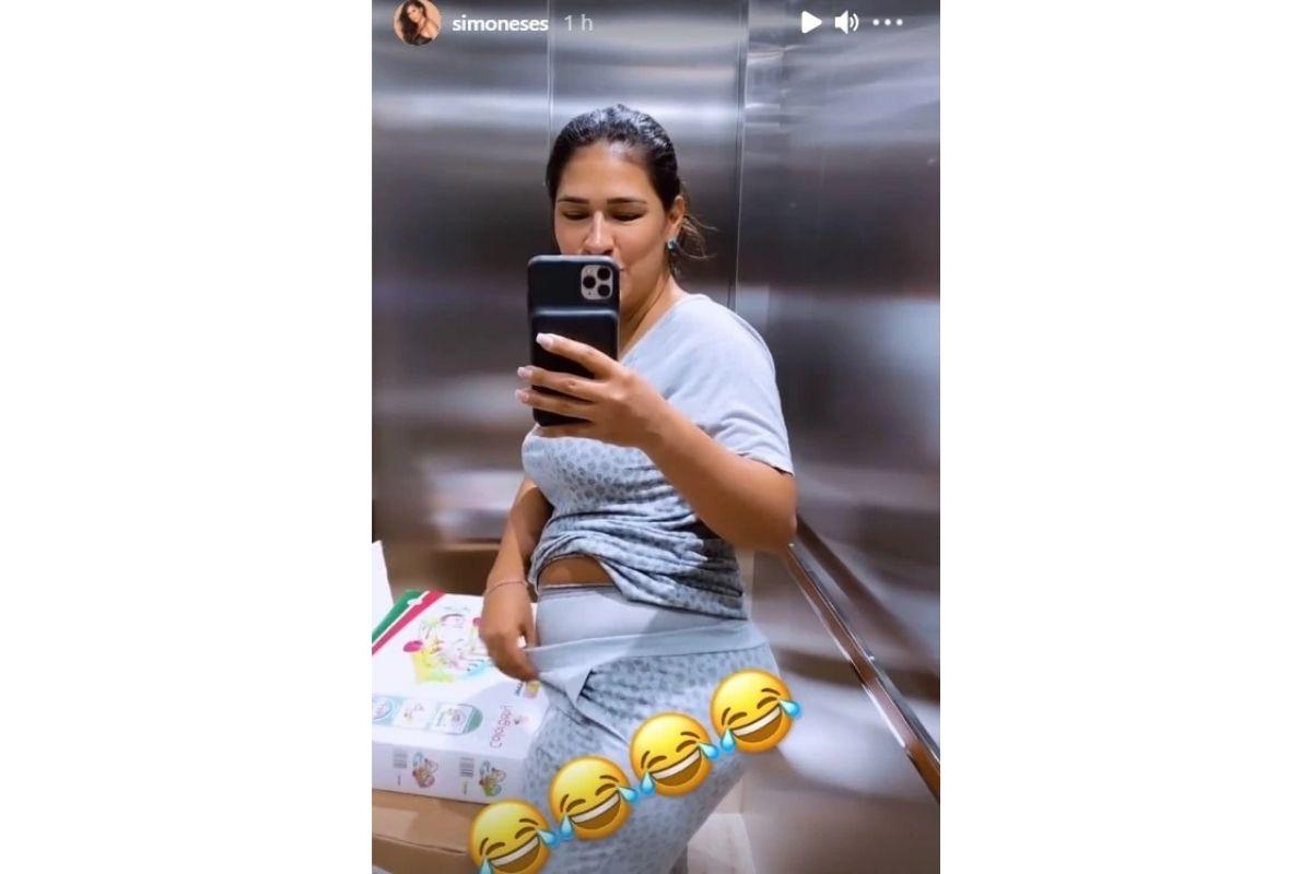 Dois meses após dar à luz Zaya, Simone mostrou nas redes sociais como está a barriga no pós-parto da segunda filha. A cantora foi sincera ao falar sobre as mudanças no corpo. No elevador de casa, ela disse que não voltou ao peso de antes de engravidar.