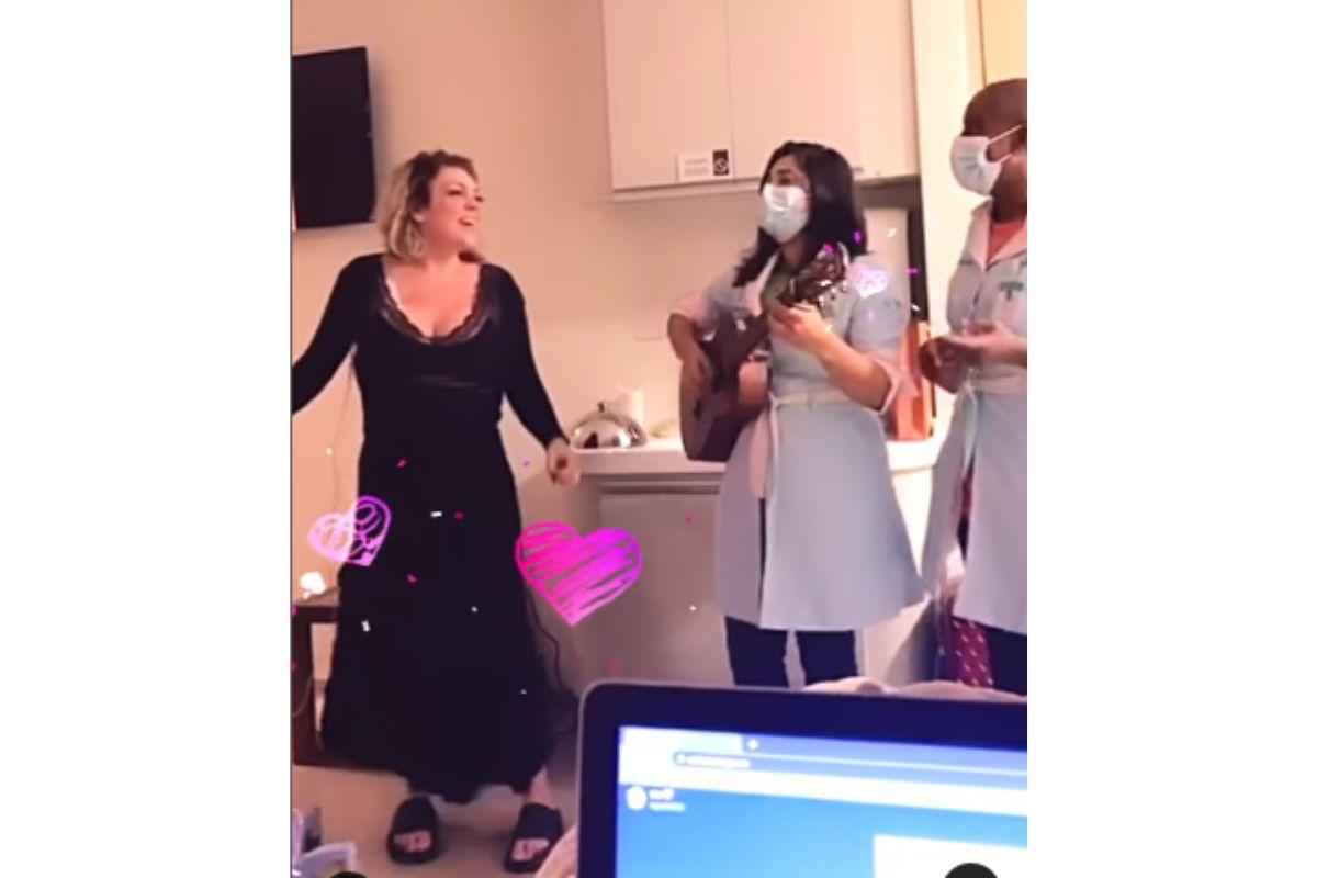 Simony cantando no quarto do hospital (Foto: Reprodução/Instagram)