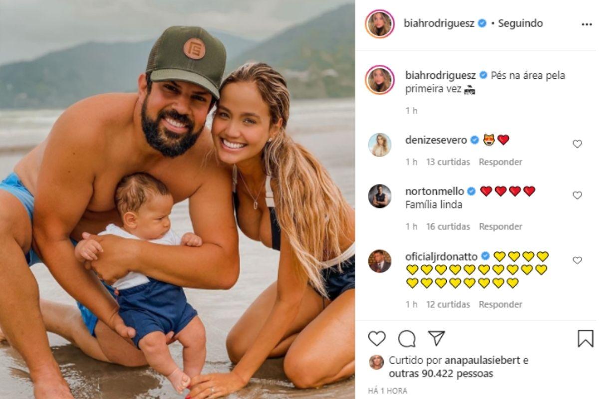 A influenciadora Biah Rodrigues e o cantor Sorocaba levaram o filho, Theo, para a praia pela primeira vez neste domingo, 6 de setembro. Nas redes sociais, a mãe famosa compartilhou uma foto do momento. “Pés na área pela primeira vez”, escreveu Biah ao compartilhar a imagem.