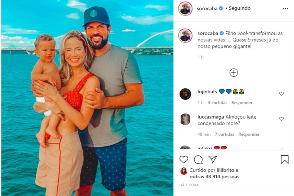 O cantor Sorocaba usou as redes sociais nesta sexta-feira, 29 de janeiro, para compartilhar uma foto linda e cheia de amor ao lado da esposa, Biah Rodrigues, e do filho, Theo. O bebê completou 8 meses no dia 17 de fevereiro, mas na publicação, o famoso já anseia pela chegada do 9° mês do garoto. “Filho você transformou as nossas vidas! … Quase 9 meses já do nosso pequeno gigante!”, declarou ele ao publicar a imagem, onde a família aparece curtindo um dia de verão.
