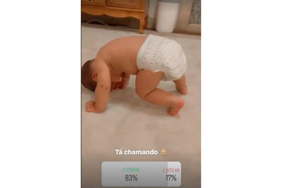 Na imagem, ela perguntou aos seguidores, “Tá chamando bebê?” e abriu uma enquete na rede social. Para a surpresa da influenciadora, 83% dos internautas disseram que acreditam na crença popular.