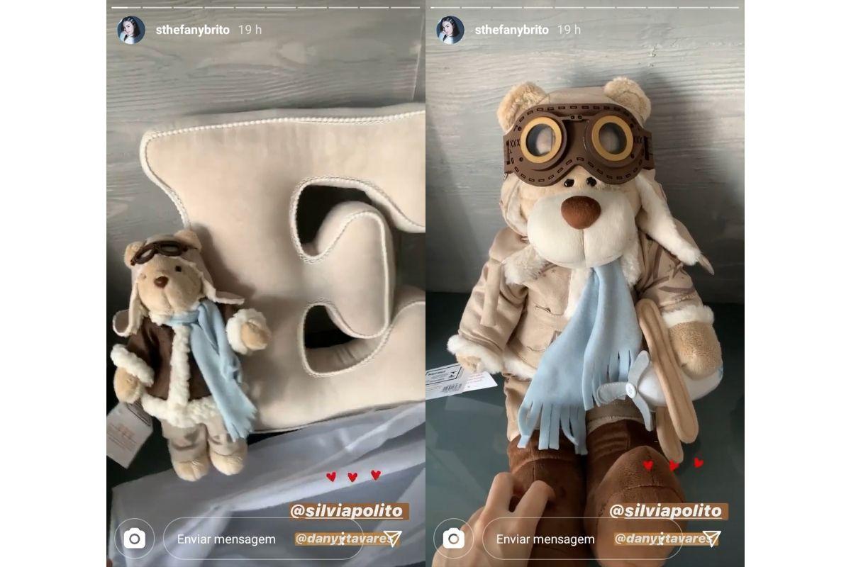 Ao mostrar os diversos ursos de pelúcia, ela ainda compartilhou um banquinho personalizado, com o mesmo tema, e se derreteu ao imaginar o filho sentado nele. “Não vou ter maturidade com meu pitoco aqui”. Estes foram os primeiros itens para o quarto do bebê. A gente amou!