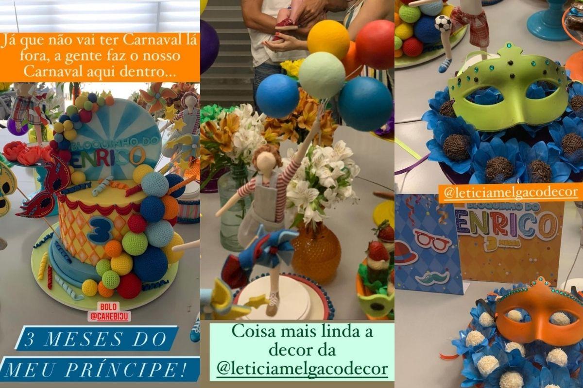 Nesta segunda-feira, 02 de janeiro, Sthefany Brito usou o Instagram para compartilhar com os seguidores alguns detalhes da festa para celebrar o terceiro mês de vida do filho, Antonio Enrico, fruto do relacionamento com o empresário Igor Raschkovsky.