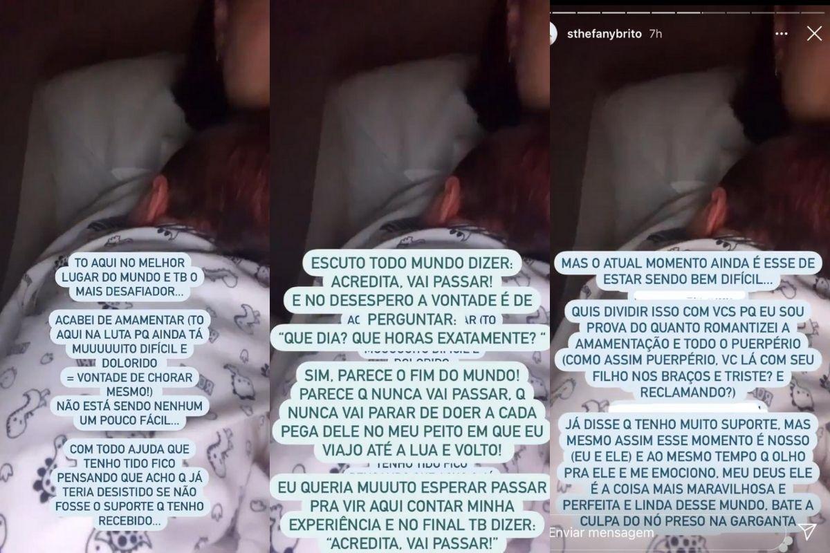 Na madrugada desta quarta-feira, 11 de novembro, Sthefany Brito, que deu à luz no último dia 1º ao primeiro filho, Antônio Enrico, fruto do relacionamento com Igor Raschkovscky, usou o Instagram para falar que está sofrendo com a adaptação para amamentar o filho.