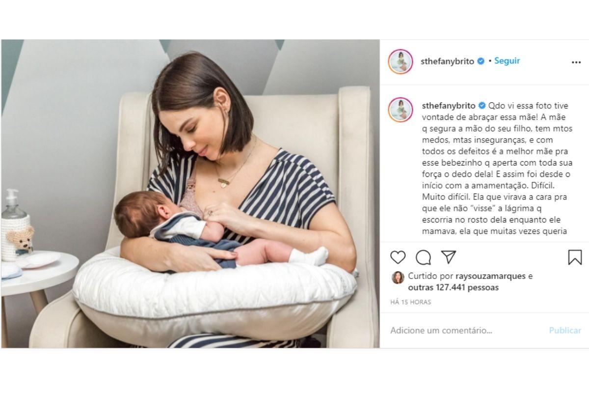 E completou: “Mas um segurando a mão do outro estão conseguindo… A dor passou, as lágrimas de dor cessaram e hoje esse momento é cheio de sorrisos, muito leitinho (Amém!) e olhares apaixonados… Com certeza outros desafios virão, mas essa foto é pra lembrar a ela que nessa mãozinha tão pequenininha que segura com tanta força o dedo dela, mora o amor incondicional. Ela é alimento dele, ele a força dela!”, finalizou.