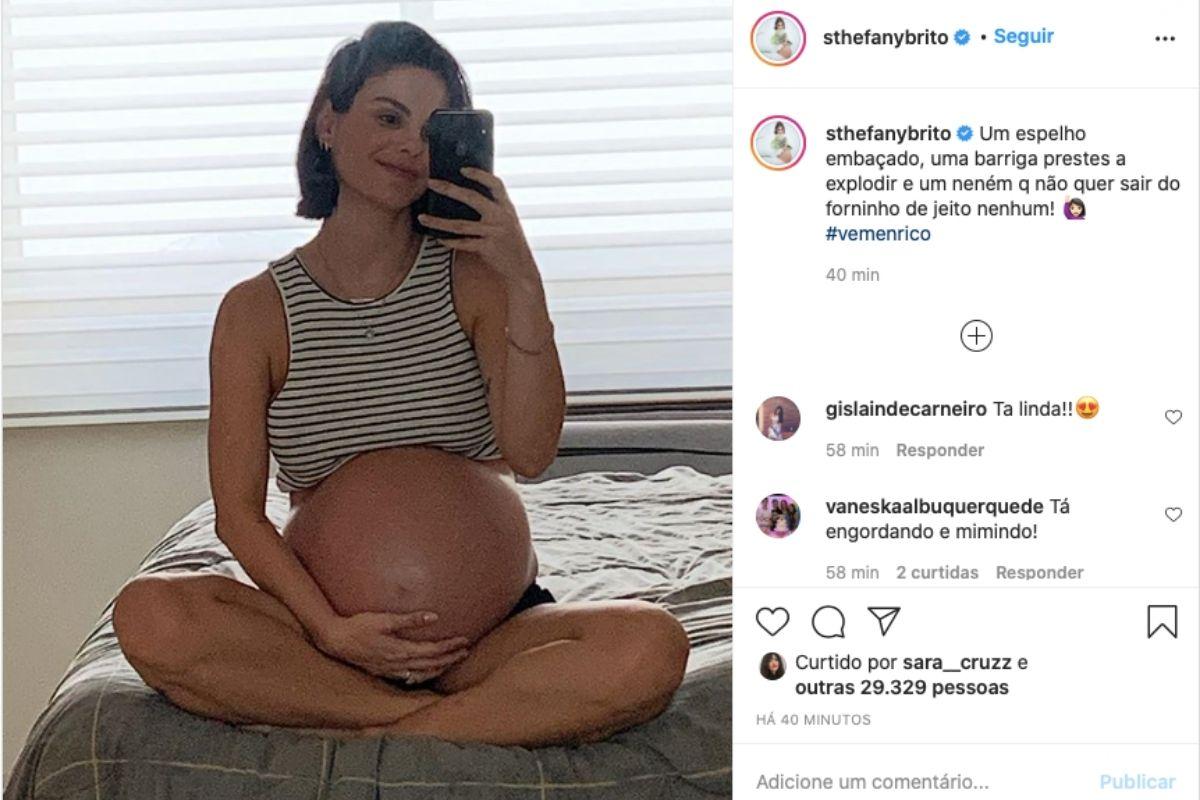 Surpresos com o tamanho da barriga de Sthefany os fãs encheram a publicação de comentários carinhosos. “Vem, Enrico!”, escreveu um fã. “Venha com saúde”, comentou outro. “Do dia 31 não passa”, adicionou um terceiro. “Que linda barrigudinha”, concluiu um quarto.