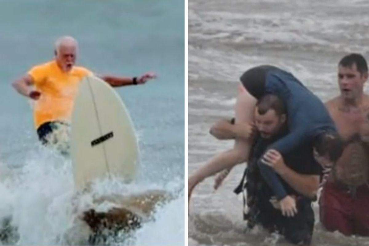 As adolescentes de 17 e 18 anos estavam tirando fotos no píer quando a água as derrubou no mar, no último sábado, 25 de julho. Foi quando Johnny começou a ouvir gritos de socorro e ajudou as duas moças com a sua prancha. O idoso pediu para as garotas seguraram as pernas dele enquanto ele remava por cima da prancha até a praia.