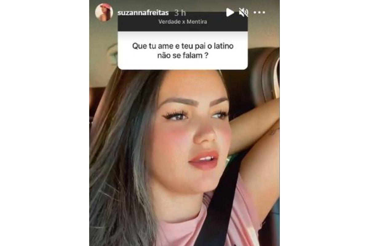 A influenciadora digital Suzanna Freitas, filha de Kelly Key e Latino, aderiu à brincadeira do ‘Verdade e Mentira’, um desafio das redes sociais no qual internautas enviam perguntas e a pessoa que compartilhou as responde, dizendo se é verdade ou mentira. Um internauta, então, aproveitou a brincadeira para perguntar a ela sobre a relação entre os pais. ”Que tua mãe e teu pai não se falam?”, perguntou o seguidor.