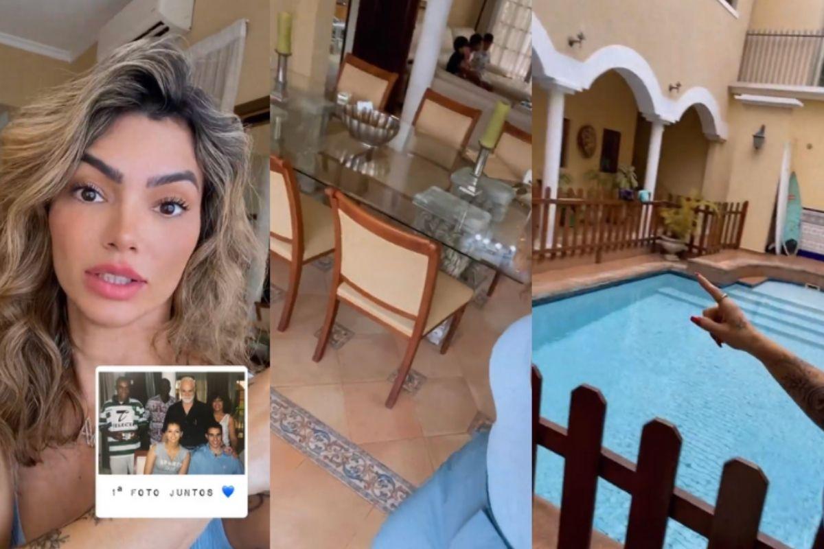 A casa tem dois andares e a cantora mostrou diversos cômodos da casa: a piscina, sala de TV, cozinha, sala de jantar, onde relembra a primeira foto tirada com o marido há 20 anos. O imóvel também tem academia, duas salas de convivência e mais dois quartos.