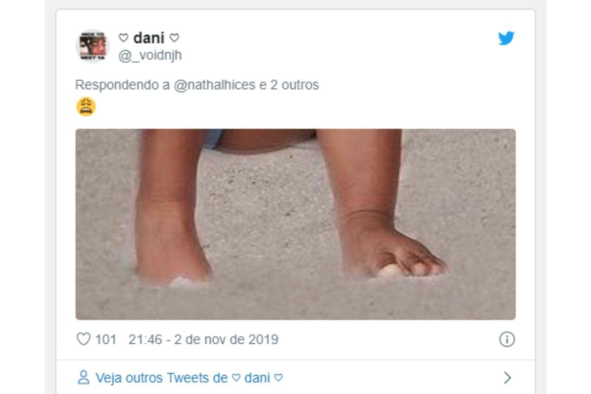 Essa fã não perdoou mesmo e até fez um recorte do pé da menina (Foto: reprodução/Twitter)