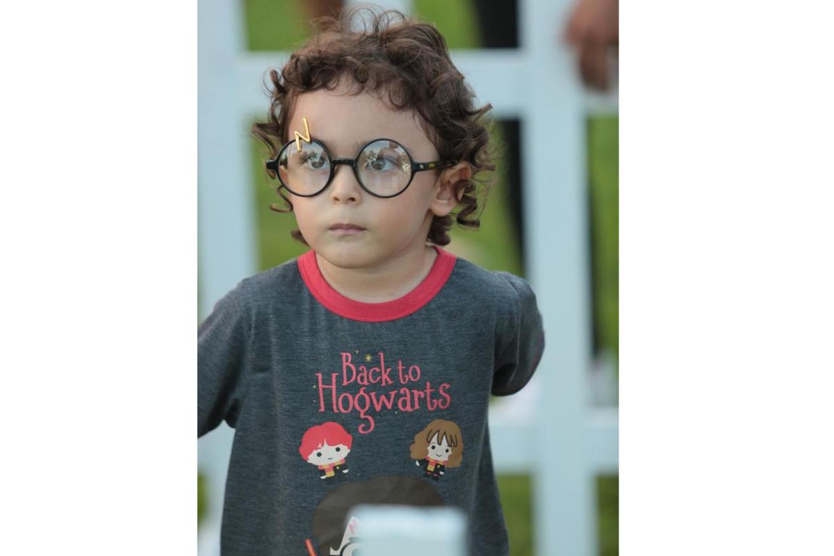 O filho único de Tainá, Martin, estava desfilando com a mãe vestindo roupas do tema “Harry Potter” em um conjunto estampando com o rosto do principal personagem da saga, junto a um shorts com diversos desenhos da saga e tudo isso combinando com a roupa da mãe. E para completar o look, o menino vestia os óculos do Harry que também tinha a cicatriz do personagem.