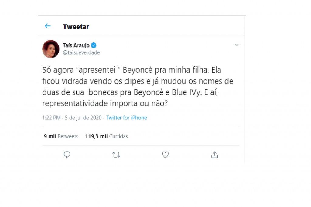 Taís Araujo abriu o coração em uma recente entrevista, onde falou sobre representatividade negra e a importância de discutir o assunto com as próximas gerações. Ela contou que a filha, Maria Antonia, agora conhece o trabalho de Beyoncé. “Só agora ‘apresentei’ Beyoncé pra minha filha. Ela ficou vidrada vendo os clipes e já mudou os nomes de duas de suas bonecas pra Beyoncé e Blue Ivy”, afirmou em um post no Twitter. “E aí, representatividade importa ou não?”, completou a atriz, casada com Lázaro Ramos.