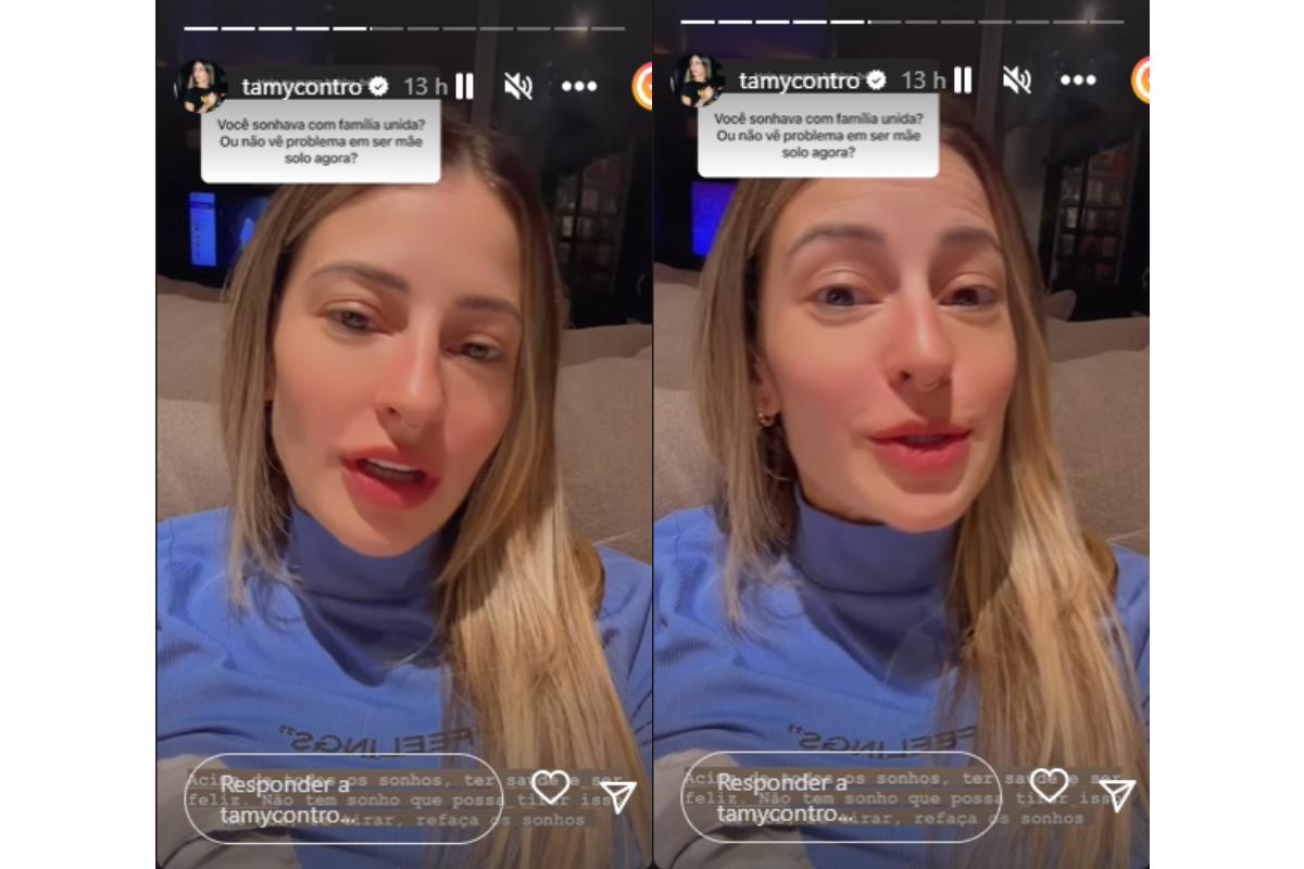 Ao ser questionada: “Você sonhava com família unida? Ou não vê problema em ser mãe solo?”, ela respondeu: “Os dois. Eu sonhava em ter família unida. Sempre falei que queria ter uma família igual a dos meus pais, eles têm 35 anos de casados, então era minha referência desde sempre. Porém eu não vejo problema em refazer sonhos”.