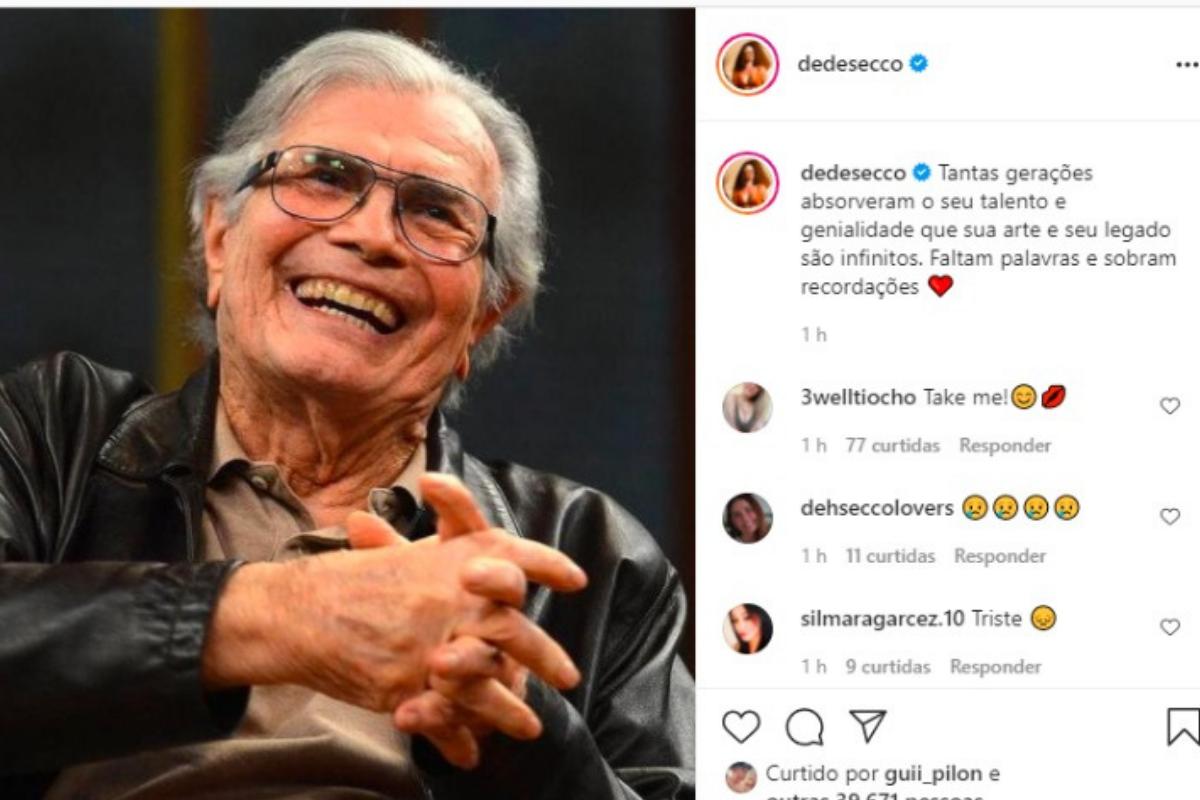 A atriz compartilhou uma foto do ator no Instagram e comentou sobre o legado que o ator deixará. “Tantas gerações absorveram o seu talento e genialidade que sua arte e seu legado são infinitos. Faltam palavras e sobram recordações”, escreveu.