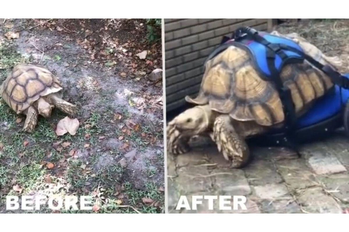 George Bailey, uma tartaruga-de-esporas-africana, recebeu uma cadeira de rodas para ajudá-lo a andar nas quatro patas pela primeira vez. A tartaruga nasceu com uma doença óssea que impediu o desenvolvimento completo das pernas. Antes do presente, ele só se locomovia se arrastando.