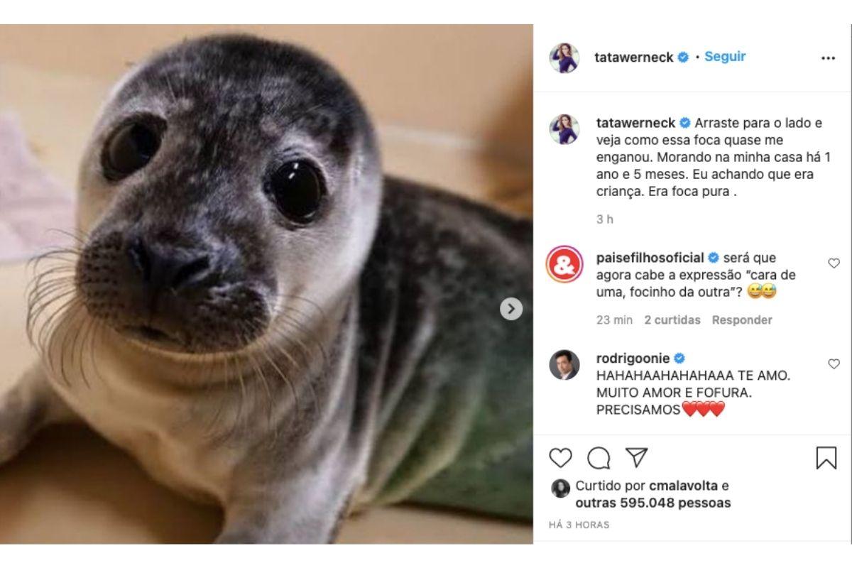 Nos comentários os seguidores adoraram a piada de Tatá e entraram na brincadeira. “Será que agora cabe a expressão ‘cara de uma, focinho da outra’?”, escreveu um. “Quero uma foquinha dessas pra mim”, disse mais uma. “O bebê mais fofo do mundo”, concluiu um terceiro. Veja a publicação completa clicando aqui.