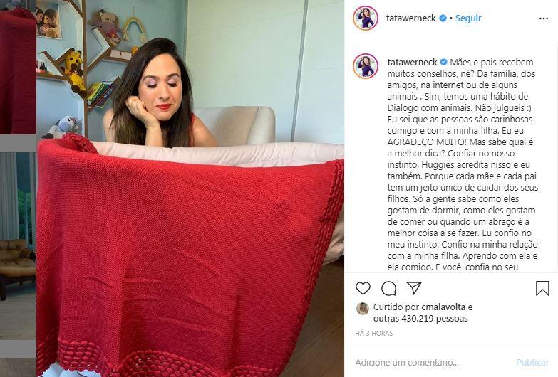 “Confio na relação com a minha filha”, disse Tatá (Foto: Reprodução / Instagram @tatawerneck)