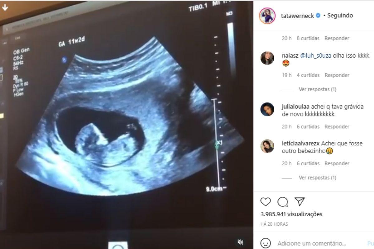 Diante da cena, os seguidores não esconderam a surpresa e quase celebraram uma segunda gravidez de Tatá Werneck. “Achei que estava grávida de novo, mulher”, comentou uma seguidora. “Já achei que fosse outro neném”, disse outro na publicação. “Grávida de novo?”, disse a terceira.