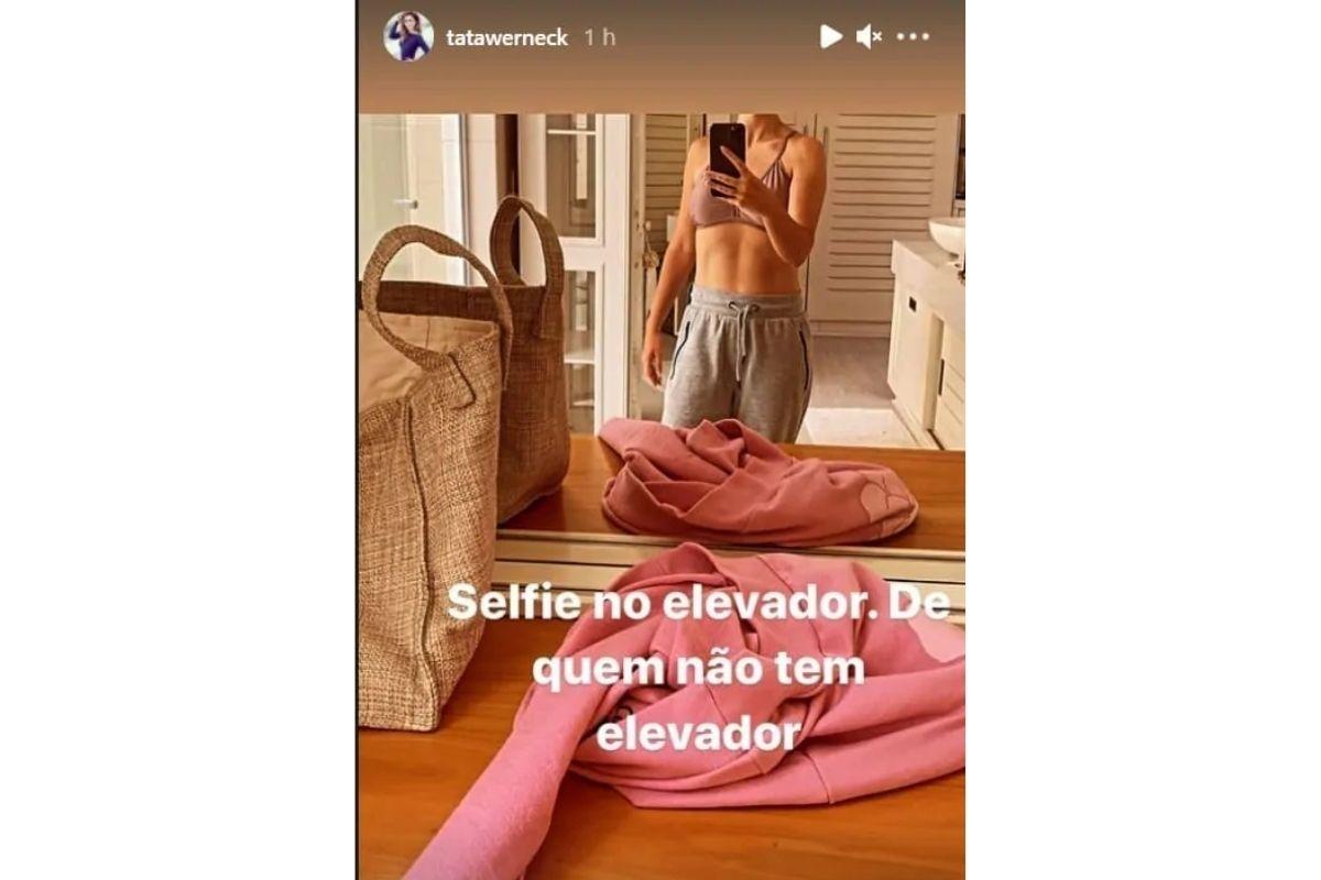 Sempre com um bom humor, ela posou de top e calça de ginástica em casa. “Selfie no elevador. De quem não tem elevador”, brincou a atriz na legenda dos Stories.