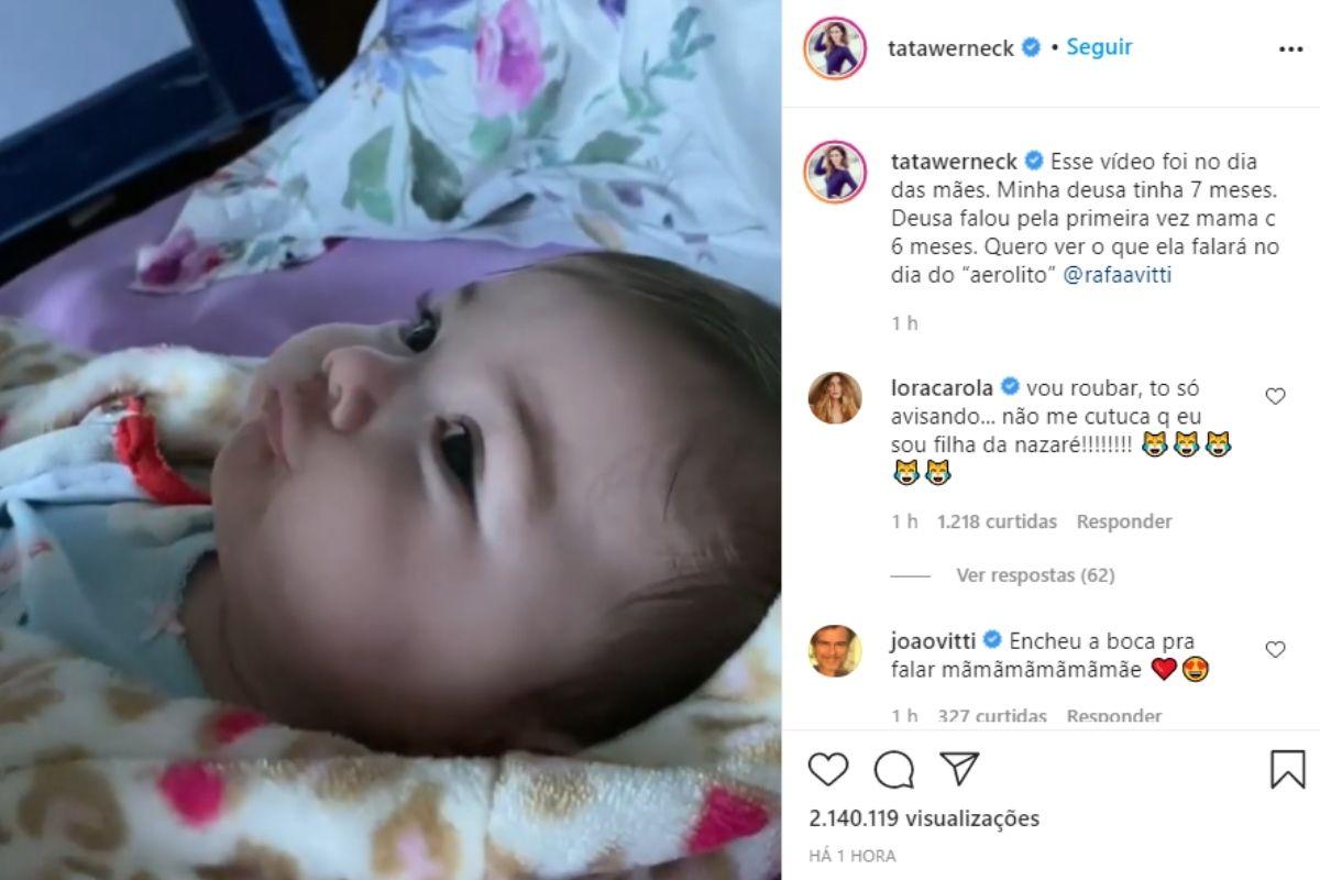A pequena disse “mama” (Foto: Reprodução / Instagram @tatawerneck)