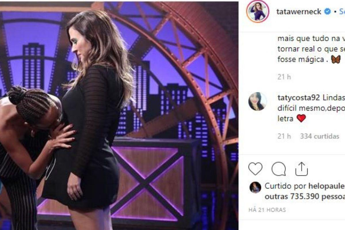 Tatá Werneck publicou uma foto, na noite desse sábado (25), em que aparece com Tais Araújo. Na postagem, a mulher de Lázaro Ramos beija a barriga da apresentadora. E a legenda da namorada de Rafael Vitti foi vista como um desabafo. Tatá agradece ter pessoas boas ao seu lado na nova temporada do “Lady Night”, programa apresentado por ela no Multishow. No entanto, falou sobre o outro lado da maternidade.