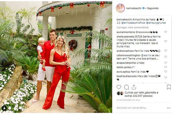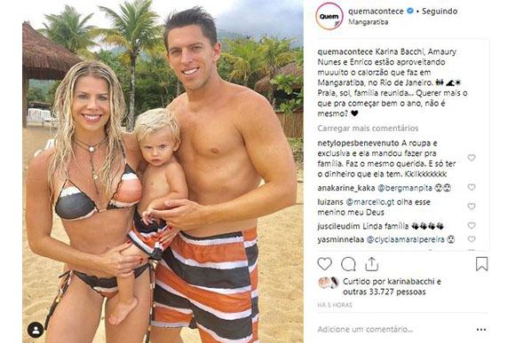 Karina Bacchi é só amores ao lado da família. Ela casou-se recentemente com o ex-jogador Amaury Nunes e tem um filho, Enrico, de apenas 1 ano. Os 3 reunidos já dão ótimos cliques, mas quando usam roupas iguais… fica um arraso!