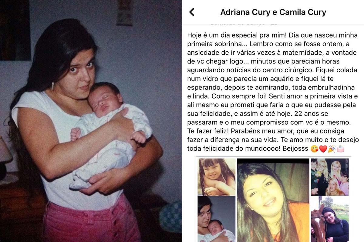 Camila conta que Adriana acompanhou seu crescimento de perto e as duas até chegaram a morar juntas por um tempo. “Dos 13 até os 18 anos passei muito tempo na casa dela e é uma das minhas melhores lembranças. Minha tia me ensinou a ser muito companheira e nunca poupou esforços para me fazer feliz. Me apoiou na faculdade, me deu um carro e fez uma festa incrível de 15 anos para mim. Nunca me esqueço das nossas viagens para Goiás. Teve uma época que íamos para lá todo final de semana”, relembra a sobrinha.
