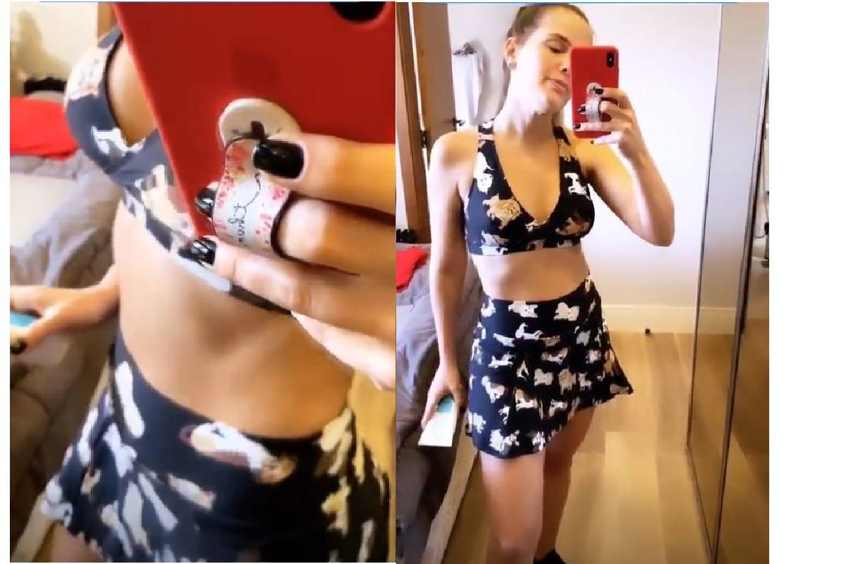 A cantora afirmou que vai fazer apenas “Uma esteira de leve”. Mas não foi só para fazer um diário de treino que ela usou as redes sociais. Thaeme fez questão de mostrar que a barriga está lisa, sem nenhuma estria e chegou a indicar um produto paras as mães que a seguem.
