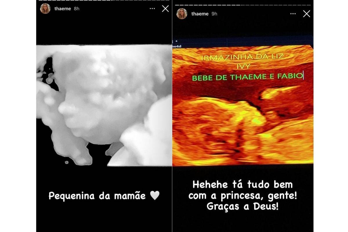 Desta vez, a cantora mostrou a barriga ao aparecer nas redes sociais fazendo uma dança. Ela escreveu na legenda do vídeo: “Dá uma moralzinha porque eu me esforcei na dancinha”. Muitos famosos foram só elogios para a cantora. A digital influencer Biah Rodrigues, esposa do cantor Sorocaba, comentou: “Ai que linda!”. E os internautas também elogiaram bastante Thaeme com a barriga de grávida. “Linda demais! Amo!”, comentou uma. Outra fã também disse: “Maravilhosa! Ficou ainda mais linda grávida!”.